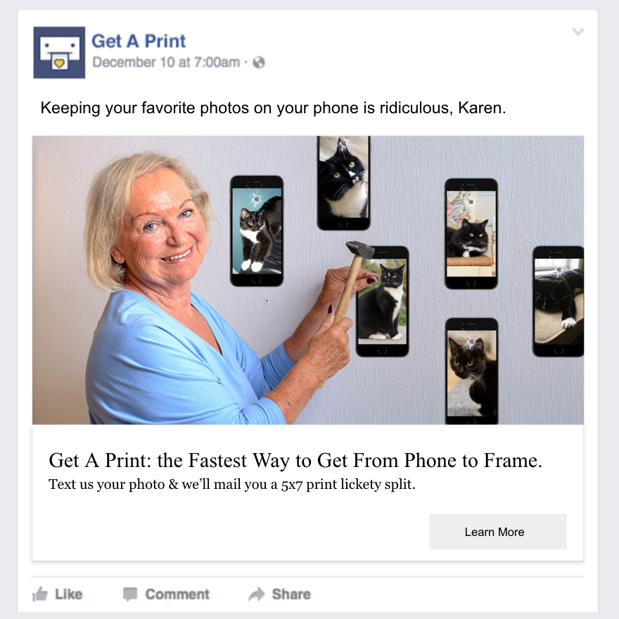 How do you convince the most digital generation ever to get good old fashioned printed photos (using a newfangled app, of course)? You get a little weird on Facebook.